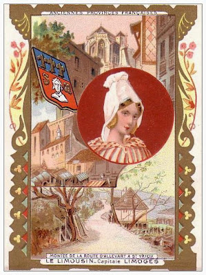 Quel est le rapport ? serait-on tenté de se demander... A priori, aucun, sinon que ces jolies petites chromolithographies datant la Belle Époque - une période éminemment riche en production d'images, véritablement encyclopédique dans l'esprit - associent chaque province à son blason particulier et à la coiffe féminine spécifique et de ce fait très distinctive. Il s'agissait là de deux identités visuelles fortes et donc bien marquées, qui témoignaient non seulement de l'incroyable diversité qui régnait au sein de notre pays, mais aussi de la remarquable créativité des femmes pour exprimer leur coquetterie ou tout simplement se faire belles. Car belles elles l'étaient, avec leurs coiffes brodées, aux formes si singulières, parfois les plus osées, et leurs costumes chatoyants patiemment cousus de leurs propres mains, pendant leur rare temps de loisir. En arrière plan de chaque image sont représentés les monuments ou les paysages les plus emblématiques de la province.