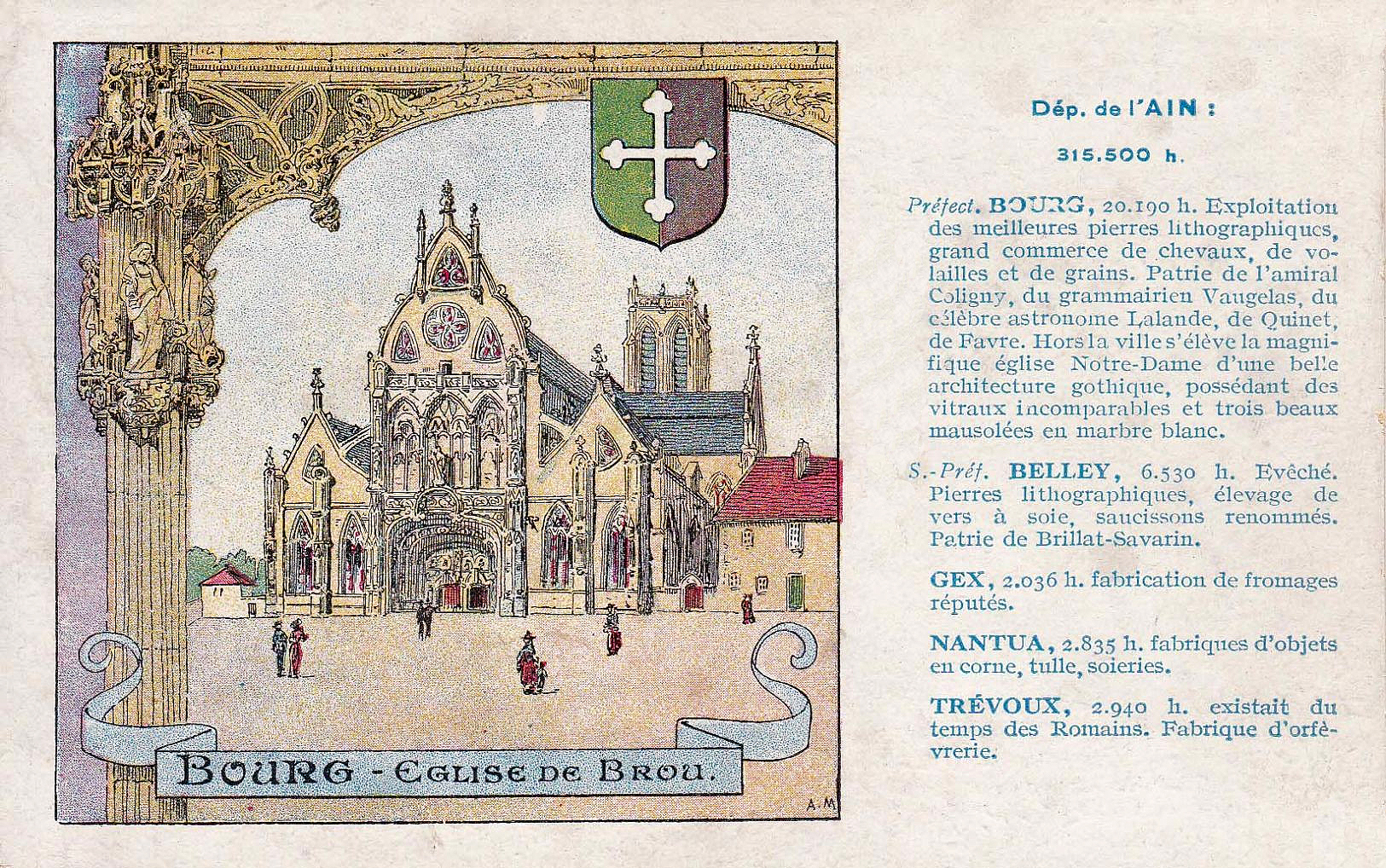 Cette série de cartes postales publicitaires, intitulée La France qu'il faut connaître, fut éditée par les Pastilles Valda * en 1910. Chaque carte illustre un département français de l'époque par ses monuments les plus remarquables ou emblématiques, avec mention des villes les plus importantes. Le blason de la préfecture vient compléter le tout.